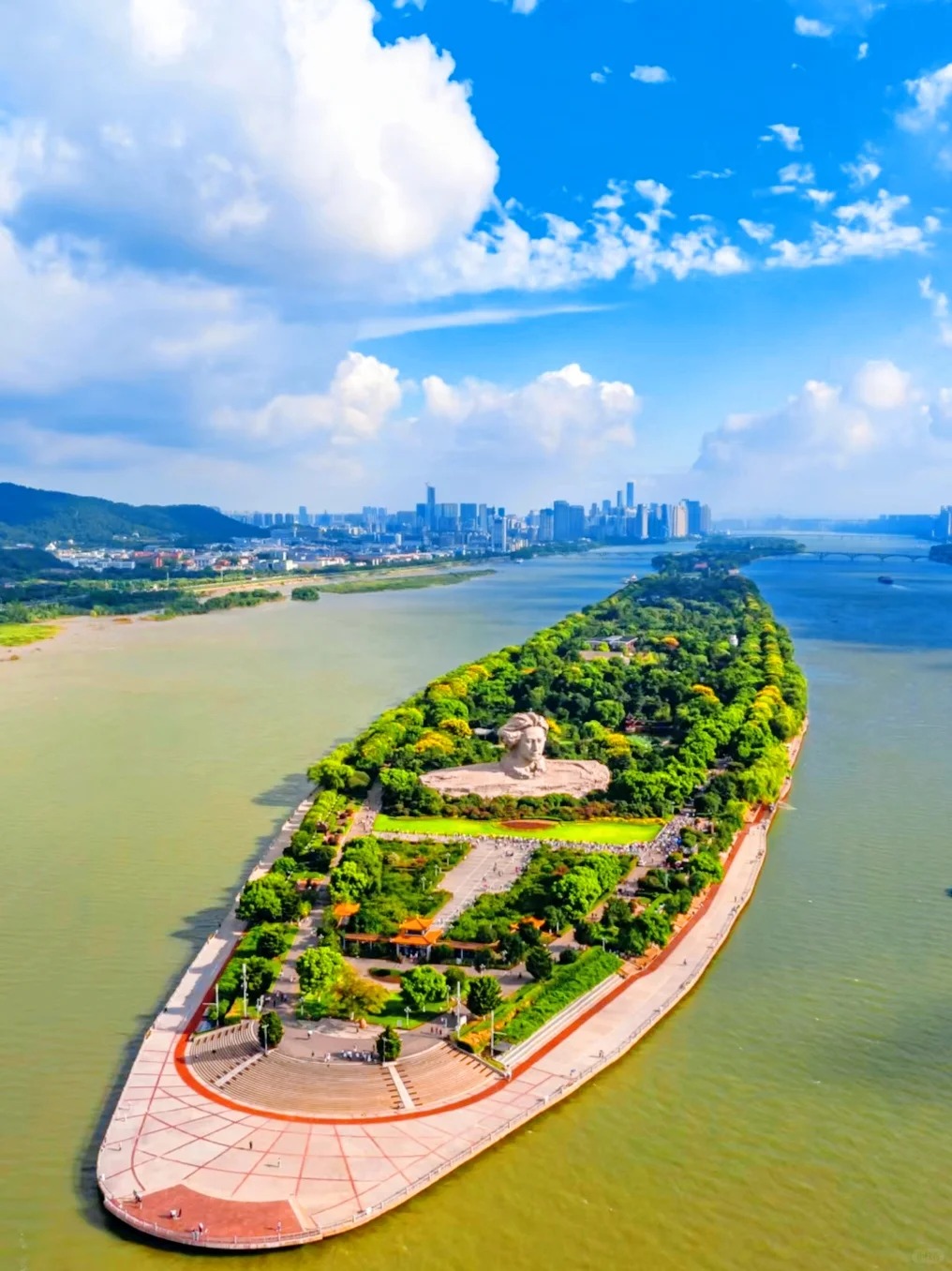 月伴飞鱼天下第一洲橘子洲位于长沙市市区内,是湘江里天然形成的一个形状狭长的江心岛,为5A景区。