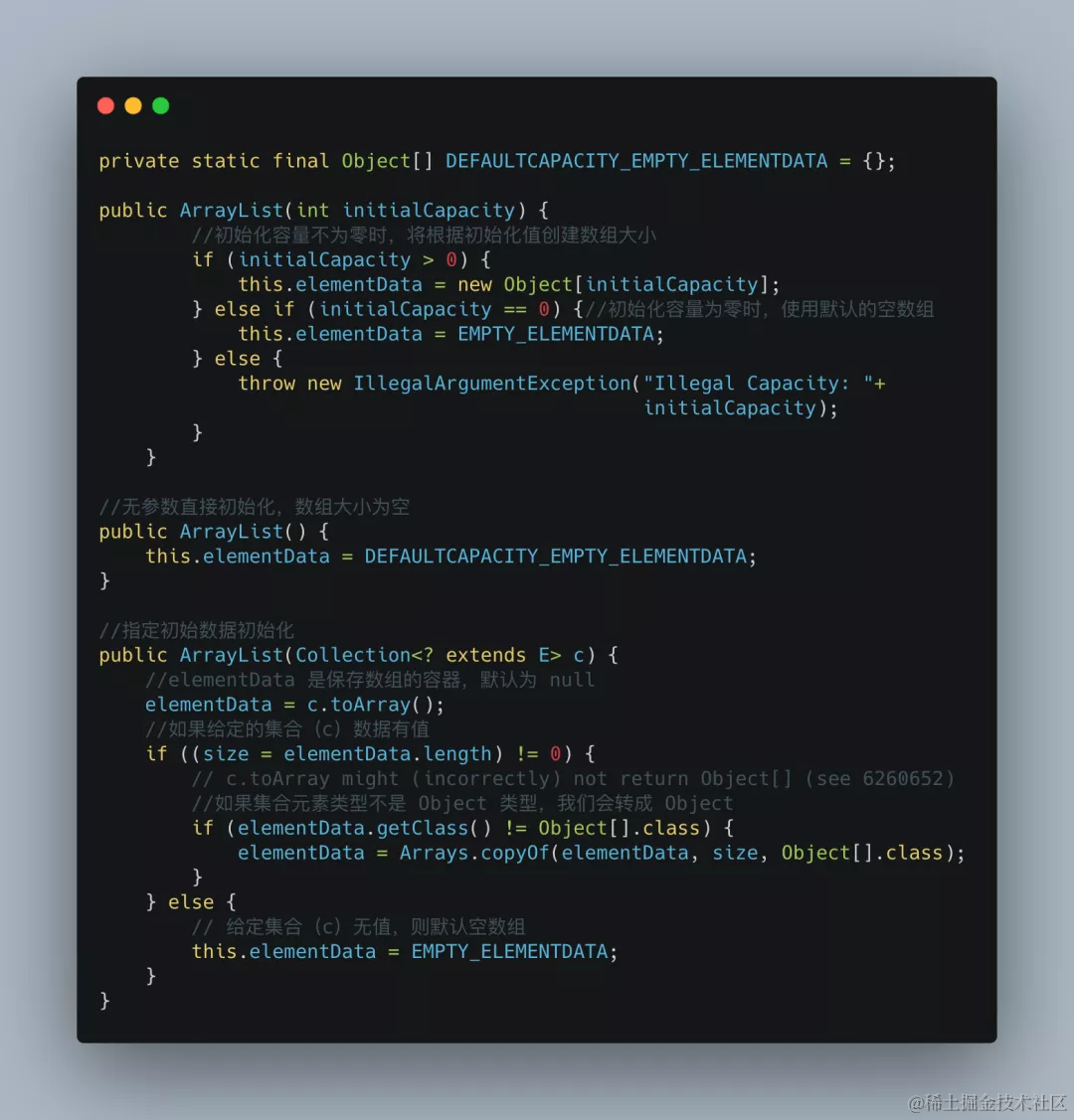 因此,我们在初始化ArrayList时,可以通过第一个构造函数合理指定数组初始大小,这样有助于减少数组的扩容次数,从而提高系统性能。