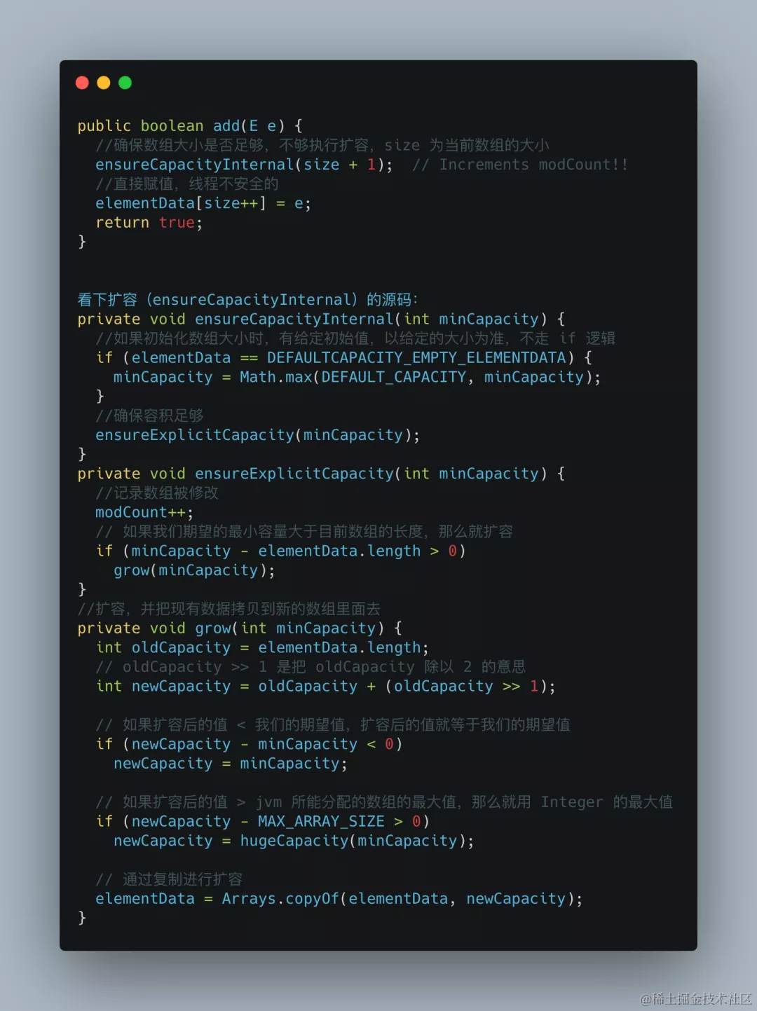 所以ArrayList在大量新增元素的场景下效率不一定就很慢的