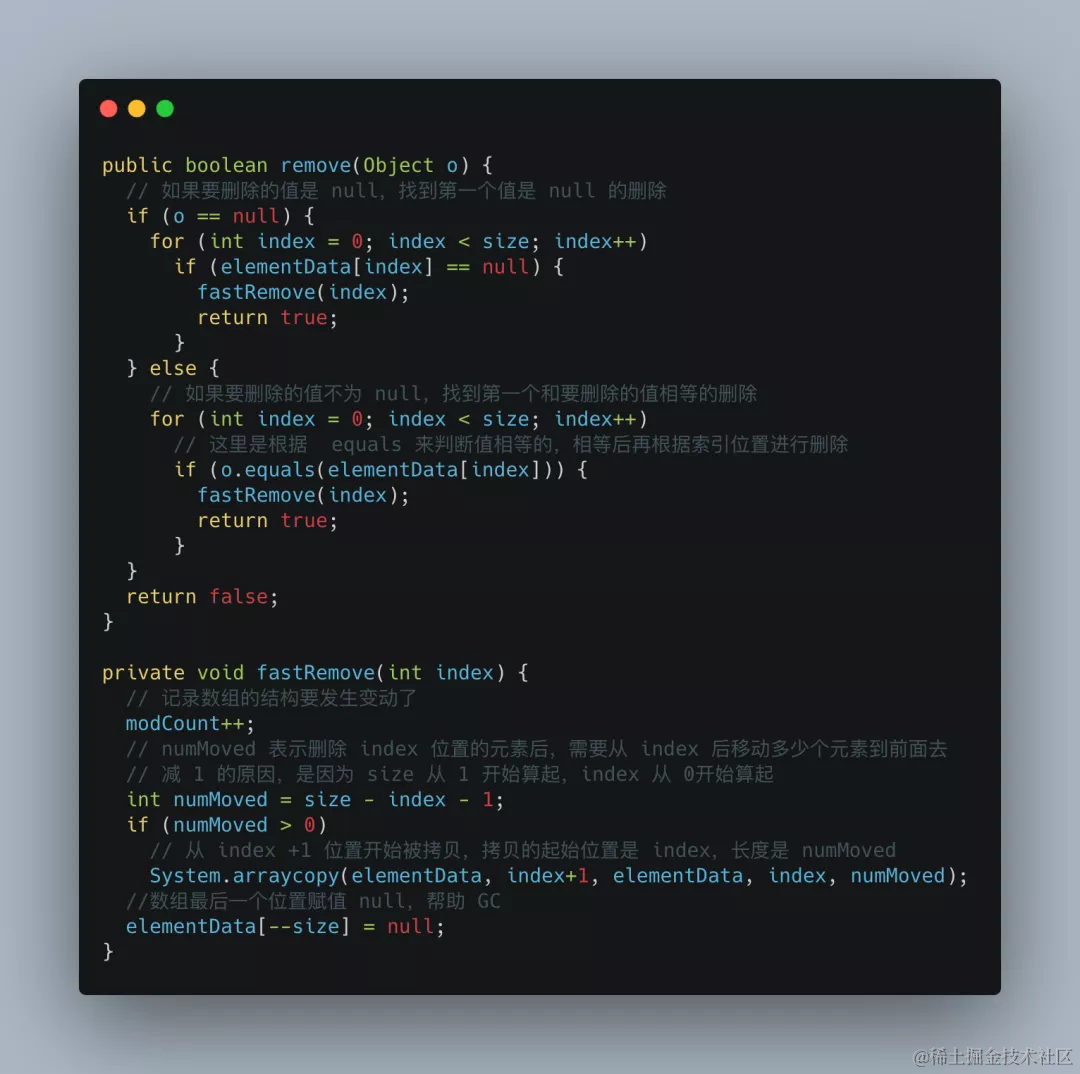 ArrayList 删除元素有很多种方式,比如根据数组索引删除、根据值删除或批量删除等等,原理和思路都差不多。