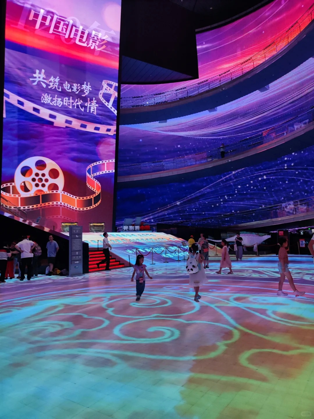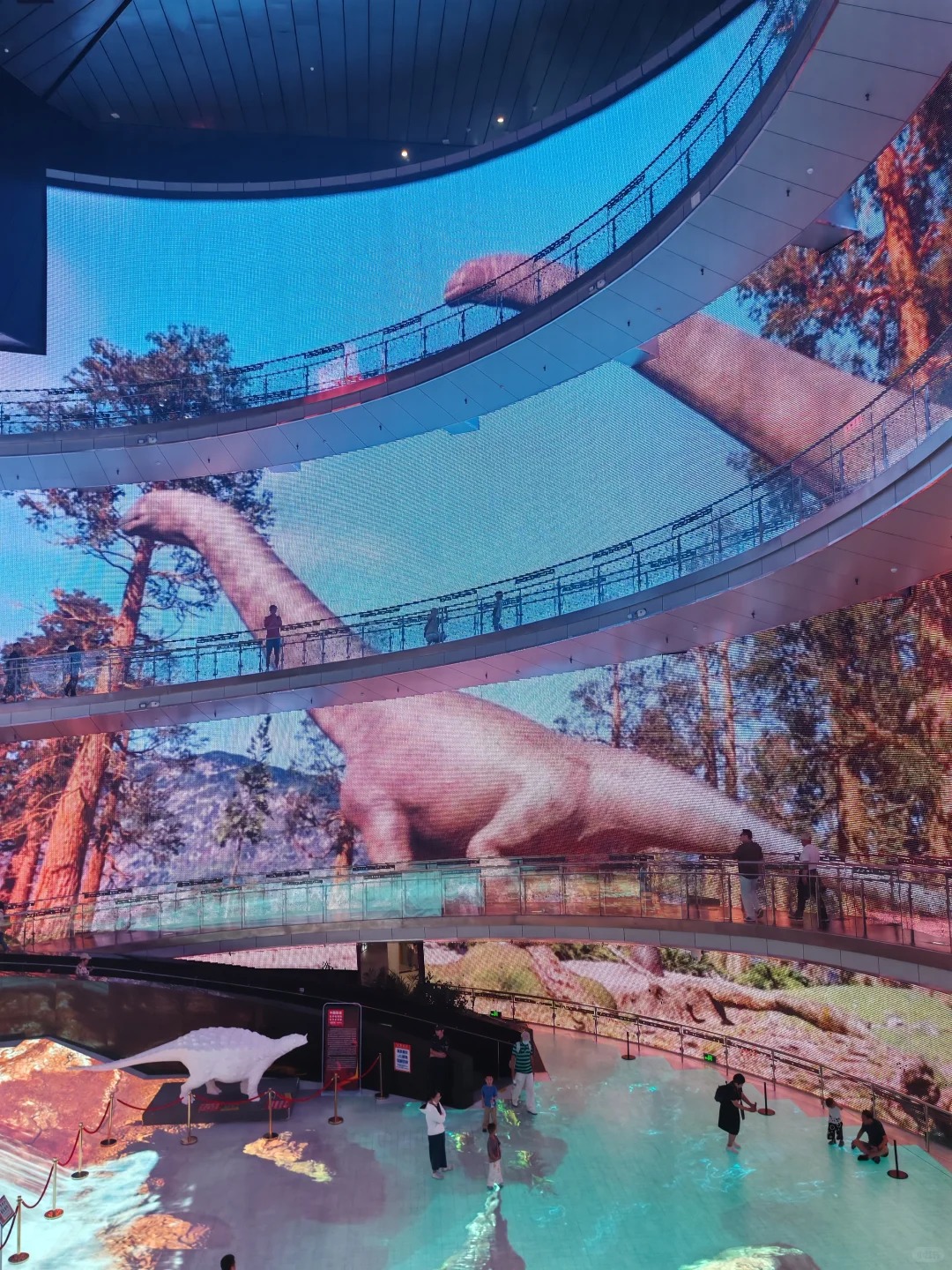 中央圆厅有四层楼高的环形巨幕,循环播放海底世界、四季更替等主题影。