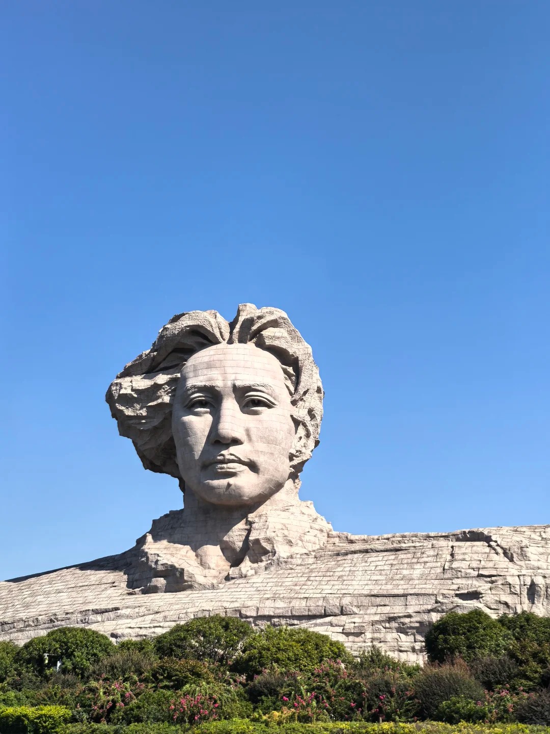 这座巨大的雕塑展示的是1925年风华正茂的青年毛泽东形象。