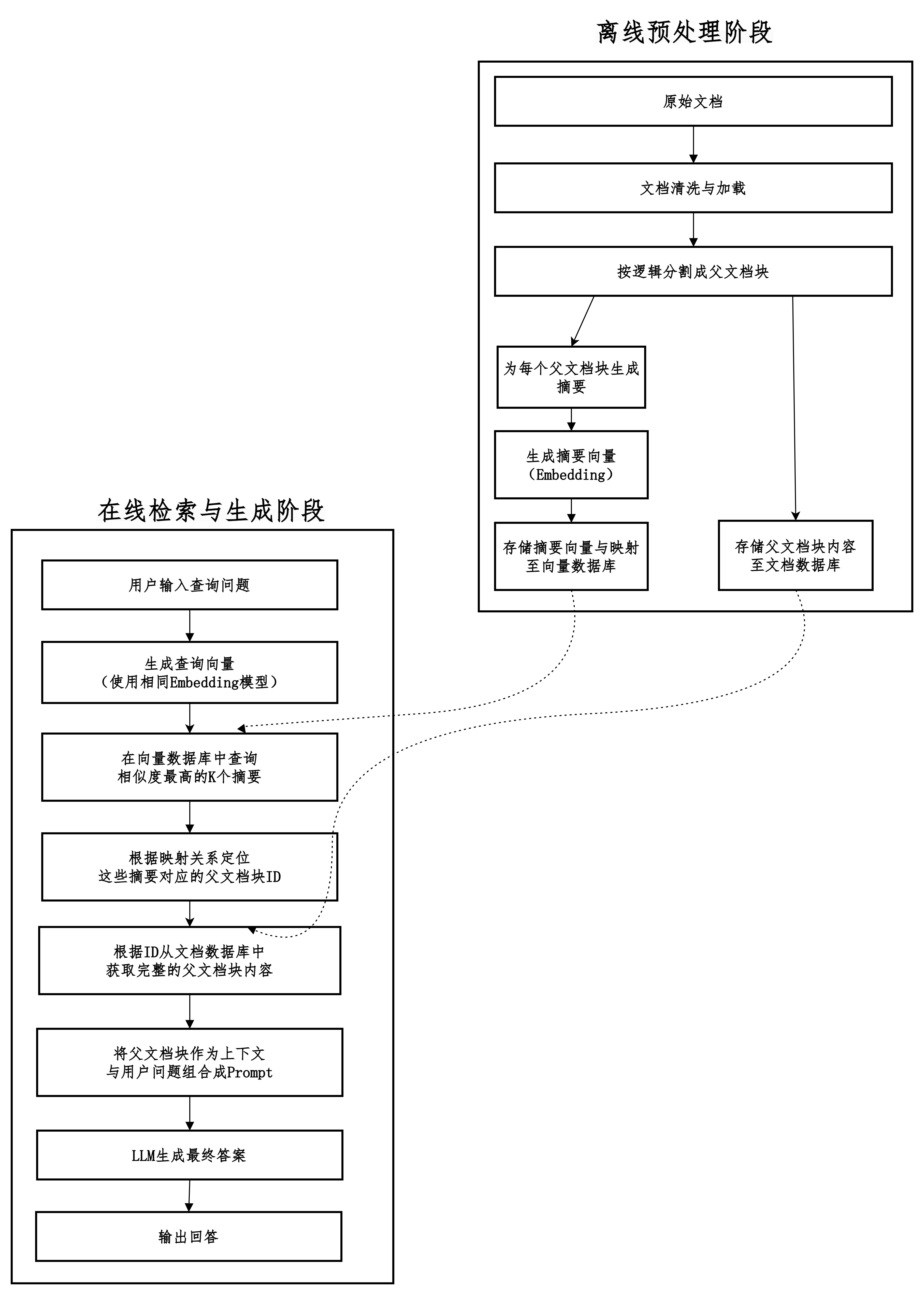 在提供给LLM的阶段,则返回这些小文档块所属的、更大的父文档块作为上下文。