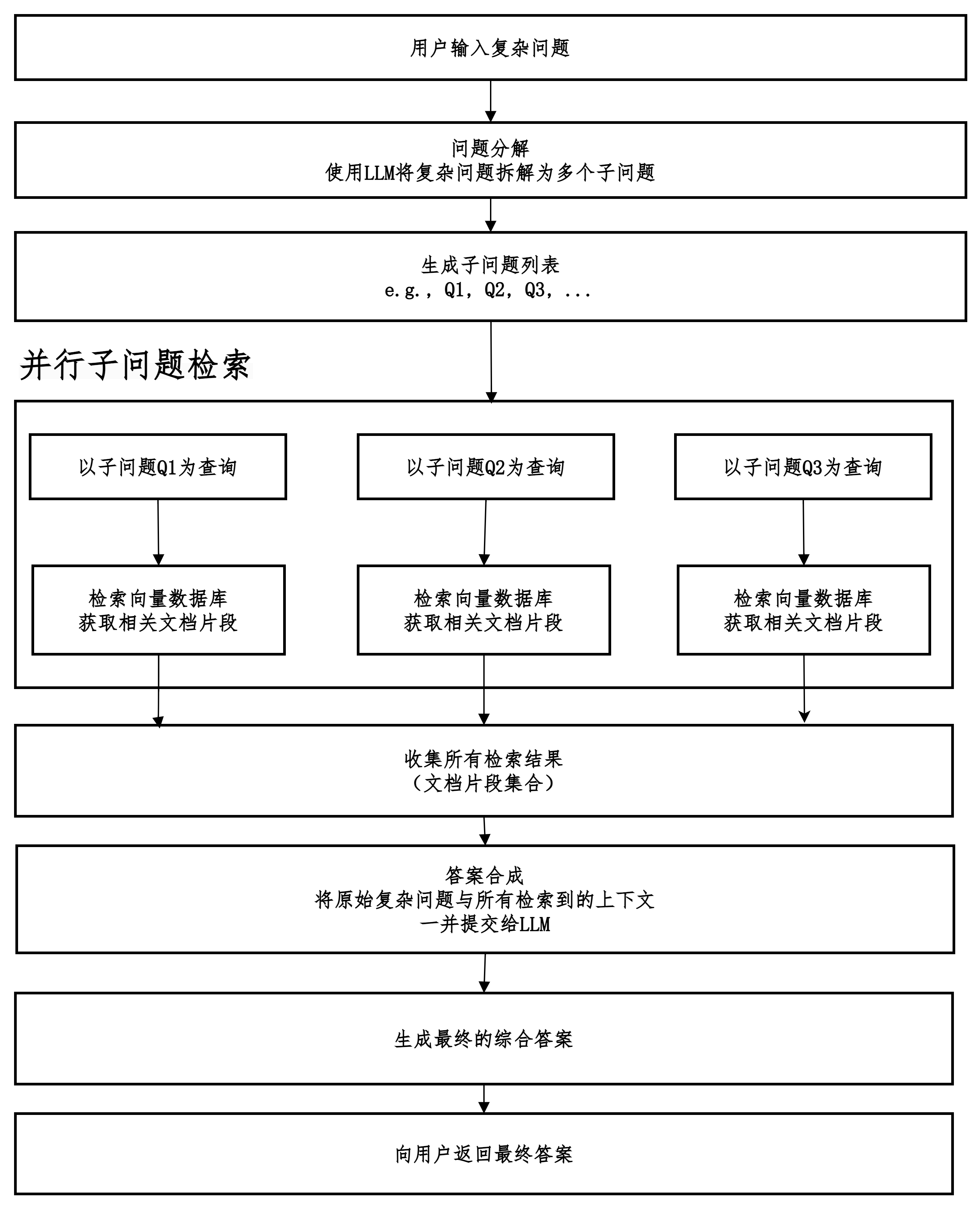 最后,将所有子问题检索到的信息综合起来,交给LLM生成一个全面、准确的最终答案。